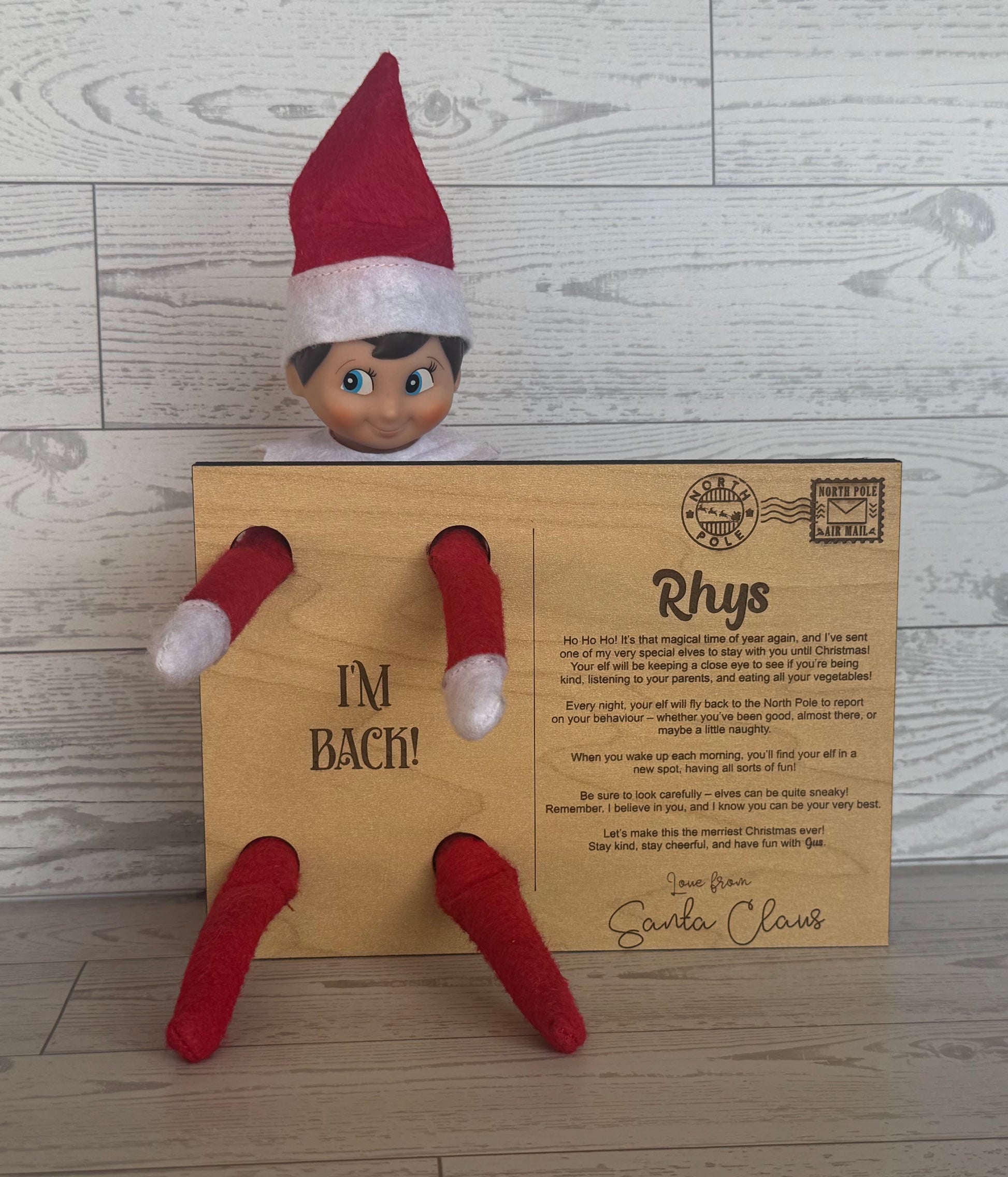 Welcome back your child's Elf on the Shelf this year in style with this wooden postcard from Santa! Completely customized with your child's name and Elf's name. Made from maple wood. Click the link below to order!