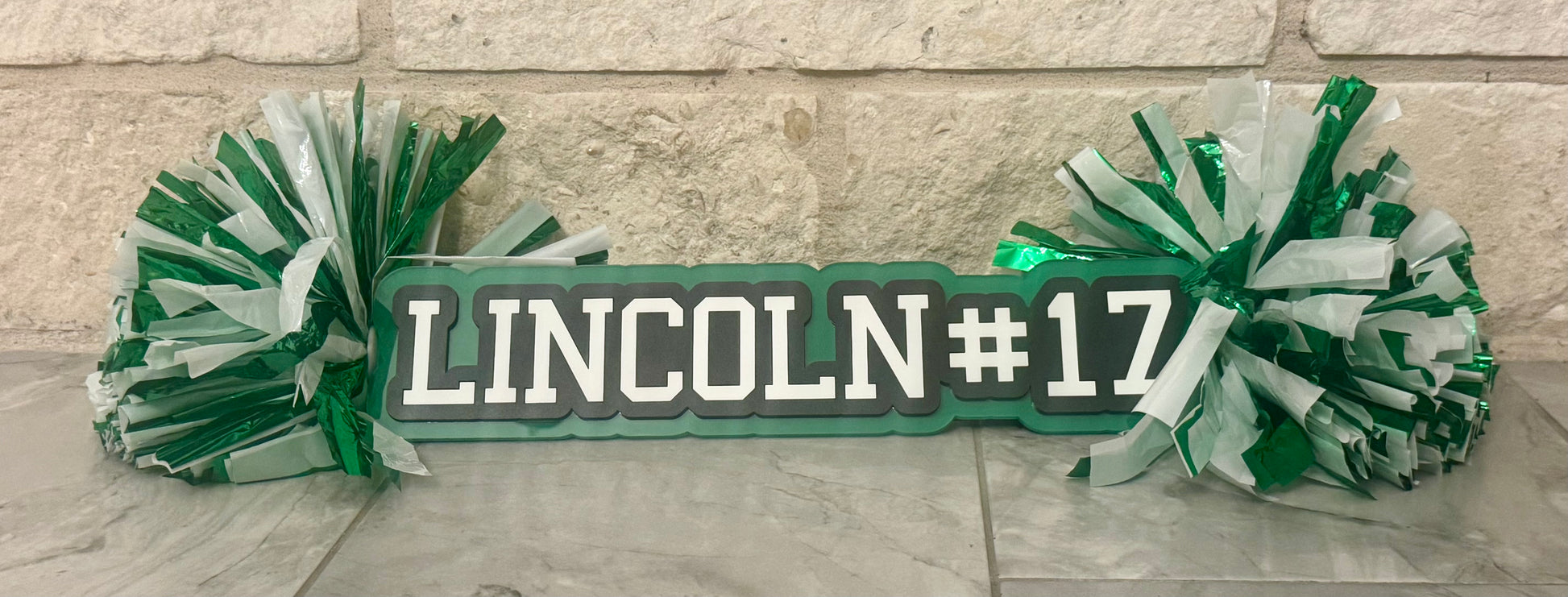 Show your pride for your favorite player or team with our newest product. Pictured are our 18 inch spirit sticks made from sturdy 1/4 acrylic. Spirit stick comes complete with two pom poms on either end and handle screwed into the back.